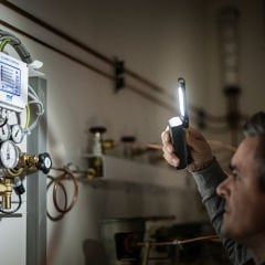 Stand, mıknatıs veya kanca ile esnek bağlantıya ek olarak kompakt çalışma lambası, en dar boşlukları bile doğrudan içeriden aydınlatan katlanabilir ve dönebilen bir lamba kafası ile etkileyicidir.